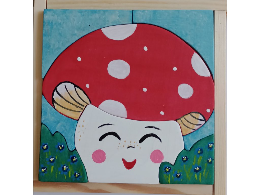 Kézzel készített,fából készült gomba kirakó, amely játékosan fejleszti a kézügyességet és a logikát, miközben a természet világát hozza közelebb a gyerekekhez.
