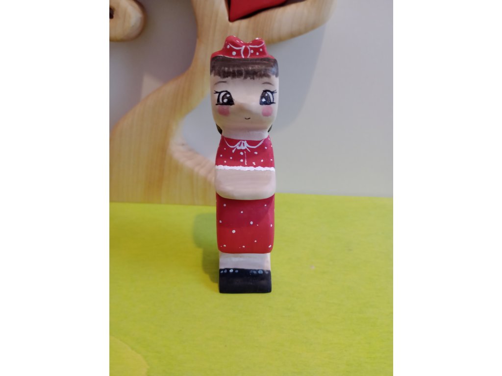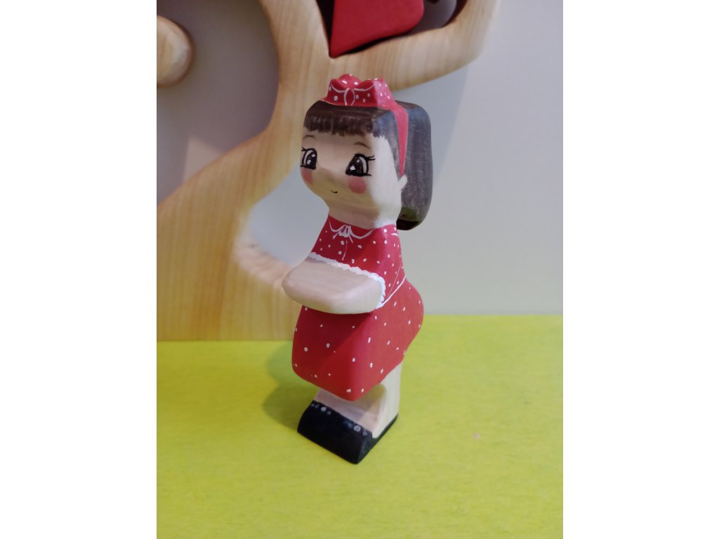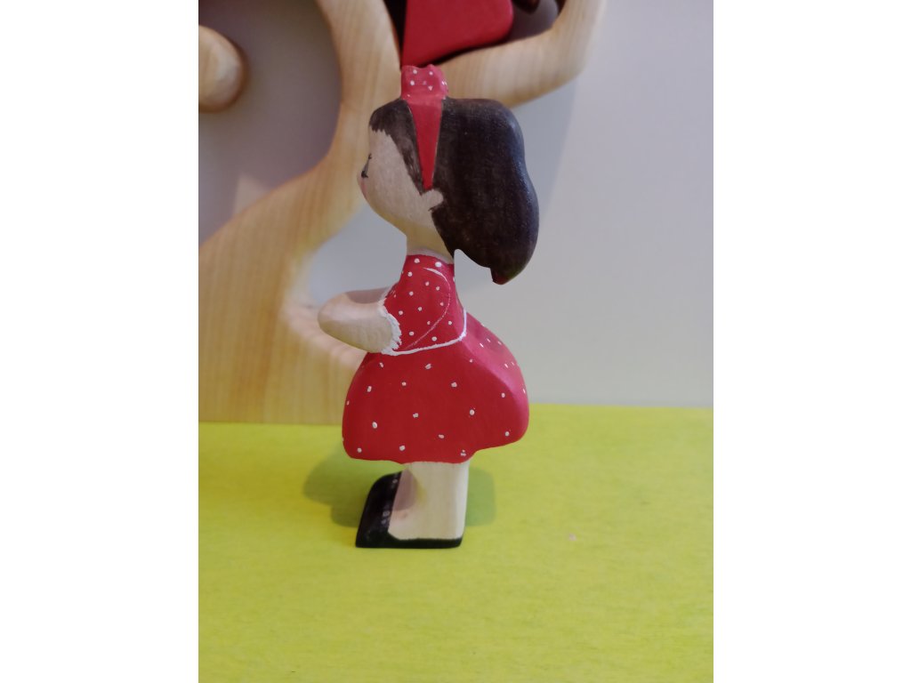 Kislány pöttyös ruhában fajáték figura