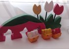 Kézzel készített,  fából készült karácsonyfa, amely vidám szerepjátékhoz és ünnepi dekorációnak is tökéletes.
